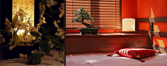 «японский светильник», сейчас очень популярный у европейцев, представляющий собой конструкцию из бумаги и металлического каркаса, служит не столько для освещения, сколько для того, чтобы подчеркнуть полумрак. Эта лампа (акари) в оригинале не имела металла: только бамбук и настоящая рисовая бумага.